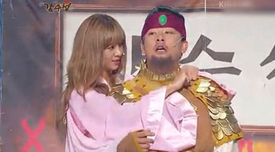 지나는 이날 방송에서 왕 김준호의 목에 검을 들이대며 “꼼짝마”라는 대사를 읊었다.