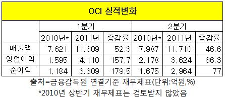 실제로 OCI는 연결기준 재무제표를 분석한 결과 올 상반기 현금 및 현금성자산을 97% 이상 늘렸다.
