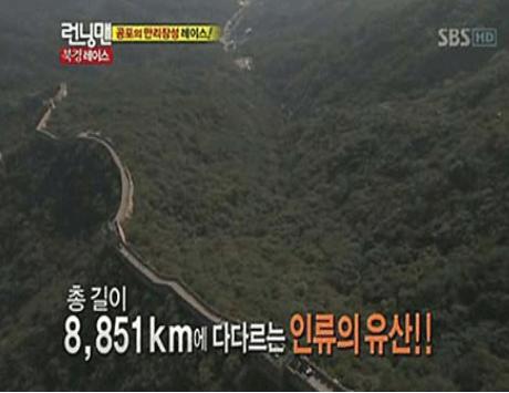 지난 18일 방송된 ‘런닝맨’ 북경레이스 편에서 ‘런닝맨’ 제작진은 만리장성을 ‘총 길이 8851km에 다다르는 인류의 유산’이라고 자막 표기했다.