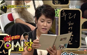 “2012년 12월 1일 오늘은 평균 시청률 28.2%를 기록하며 한국 최고의 토크 프로로 자리잡은 '강심장’ 녹화를 왔다. 아 제목이 바뀌었지. '이심장’에 왔다. 이승기씨가 단독MC를 맡은 지도 벌써 9개월이 지났다. 9개월 전 강호동은 불현듯 자신의 고향인 씨름판으로 돌아가기 위해 홍샅바를 들고 연예계를 떠났다. 이승기가 MC를 본지도 9개월이 돼간다. 참 재밌는 사람이었는데 보고싶다.”