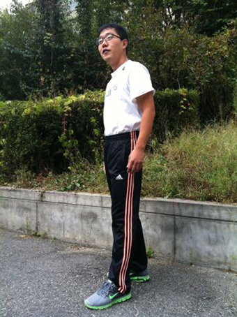 방송인 김제동이 연예인 트레이닝 패션 종결자로 나섰다.