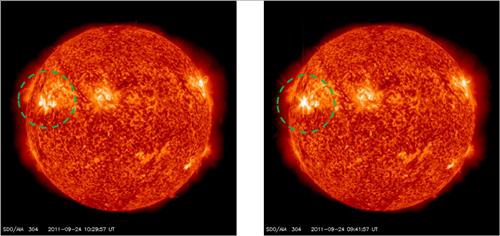 태양흑점 1302는 지난 22일에도 한 차례 폭발을 일으키는 등 지금까지 10여 차례 크고 작은 규모의 폭발을 거듭했다.