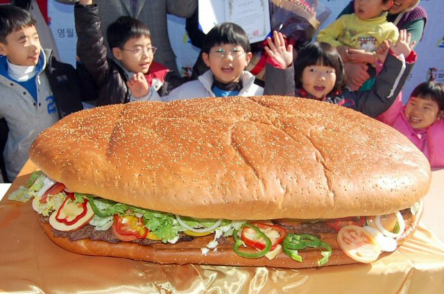 URL복사 기사공유하기 스크랩 프린트 메일보내기 글씨키우기 일본 현지에서 판매되고 있는 초대형 김밥이 네티즌 사이에서 화제를 모으며 과거 이슈가 됐던 초대형 햄버거 사진이 재등장해 주목받고 있다. 바로, 2009년 한우 햄버거 축제에서 만들어진 초대형 햄버거.이날에는 강원 영월군 주천면 다하누촌이 주민과 관광객 7천여명이 참가한 가운데 마련한 한우햄버거 축제에서 만들어진 국내에서 가장 큰 1m 크기의 초대형 한우 햄버거가 눈길을 끌었다.네티즌들은 "아, 야식이 생각나는 시간", "저 김밥과 햄버거 두개만 있으면 평생 음식값 걱정 없겠다"고 말했다.(사진-연합뉴스) 저작권자 © 소비자가 만드는 신문 무단전재 및 재배포 금지 온라인 뉴스팀 다른기사 보기 URL복사 기사공유하기 주요기사 GS그룹, 허용수·허세홍 부회장 승진...허철홍, GS엔텍 대표 선임 네이버파이낸셜-두나무 20조 원 빅딜 성립... 공룡 빅테크 탄생 [인사] 현대해상 김동연 지사, "여성폭력 근절 경기도가 함께 할 것"...젠더폭력 통합대응단, 4만488명 지원 롯데건설, '부도설' 최초 유포자 경찰 고소…"허위사실 유포 강력 대응" 롯데, 세대교체 단행...부회장 전원 용퇴·CEO 3분의 1 물갈이