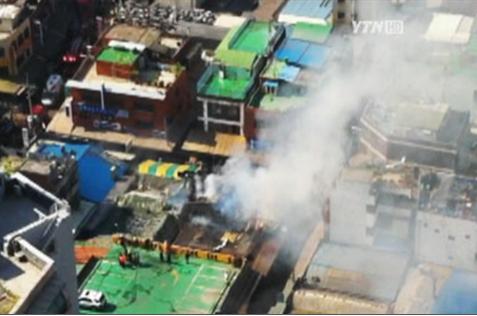 서울 중부 소방서 관계자는 “산소 가스를 작은 통으로 옮기던 중 불꽃과 폭발음이 나며 불이 붙었다”는 피해자 진술을 토대로 가스취급 부주의에 의한 화재로 판단하고 정확한 화재 원인을 조사 중이다. (황학동 가스 폭발, 사진-YTN 뉴스 캡처)