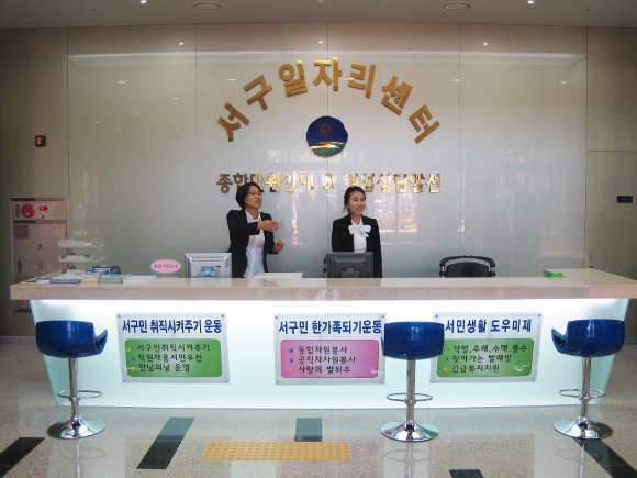 '서구 일자리센터'는 기존의 경제과와 동 주민센터에 설치된 ‘취업정보센터’ 업무를 통합관리하고 청사 방문 민원의 이용 편의를 위해 1층 로비에 별도의 공간을 확보해 새롭게 자리를 잡았다.