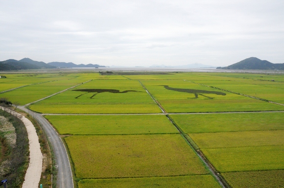 순천시는 순천만 59ha의 경관 지구를 친환경으로 관리하면서 2만4천㎡의 들녘에 색이 있는 벼 종자인 자도벼를 일반벼 사이에 심어 2012여수세계박람회와 2013순천만국제정원박람회의 문구를 수 놓았다.