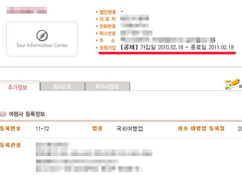 일단 업체가 등록관청에 신고한 적법 업체가 맞는지 확인했다면, 회사 정보를 통해 영업보증보험 가입 여부를 살펴봐야 한다. 만약 가입하지 않은 업체 또는 보험만료기간을 갱신하지 않은 여행사일 경우에는 피해를 입더라도 보상 받기 어렵다.