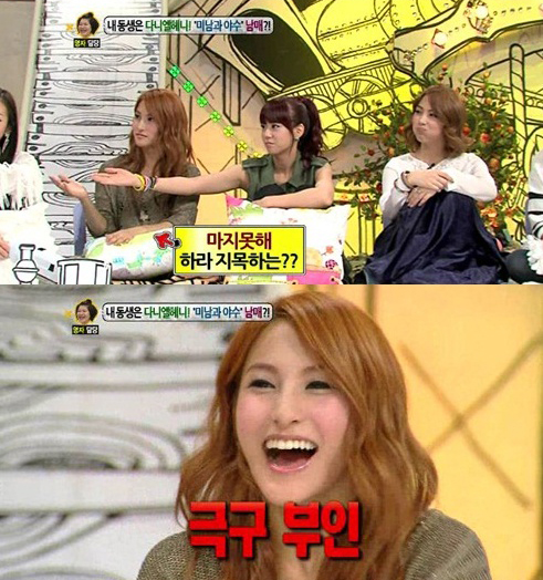 이날 방송분에서 메인 MC 신동엽이 그룹 내에서 외모 담당 멤버가 누구냐고 물었다. 이에 박규리가 구하라를 지목하자 그 모습을 자세히 지켜보던 MC 신동엽은 “박규리가 마지못해 구하라를 지목했다”고 지적했다.