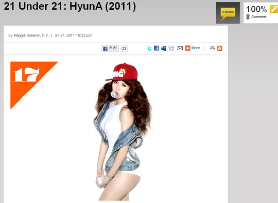 이 차트에 현아는 한국 가수로서 처음으로 17위에 이름을 올린 것.
