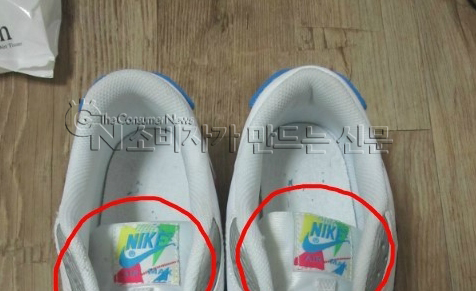 ▲ 운동화 밑창의 '나이키' 로고가 벗겨졌다.