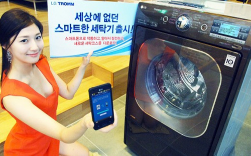 최근 출시된 '트롬 6모션 2.0' 세탁기는 집 밖에서도 스마트폰으로 작동시킬 수 있다. 자가진단 매니저 등은 말할 것도 없다.