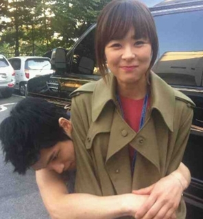 특히 '강짱 터뜨리기'라는 글에서 김재중의 코믹한 장난이 엿보인다.(김재중 최강희 백허그 사진-김재중 트위터)