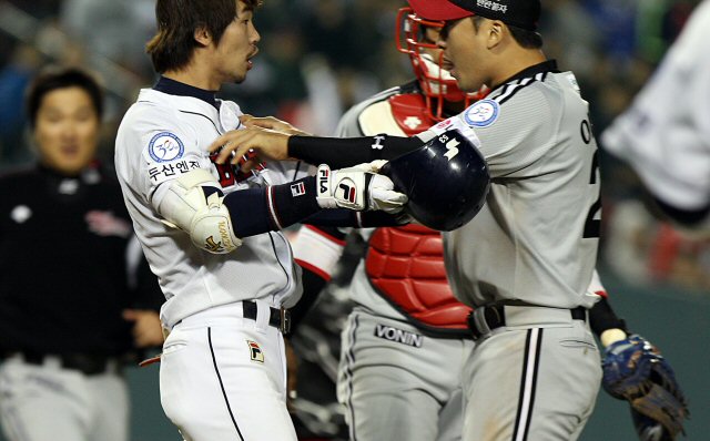 URL복사 기사공유하기 스크랩 프린트 메일보내기 글씨키우기 2일 잠실야구장 프로야구 LG-두산 7회말 2사 상황에서 두산 오재원이 LG 투수 유원상의 빈볼성 투구에 마운드로 가다 LG 이택근과 몸싸움을 하고 있다. (사진=연합뉴스) 저작권자 © 소비자가 만드는 신문 무단전재 및 재배포 금지 온라인뉴스팀 다른기사 보기 URL복사 기사공유하기 주요기사 GS그룹, 허용수·허세홍 부회장 승진...허철홍, GS엔텍 대표 선임 네이버파이낸셜-두나무 20조 원 빅딜 성립... 공룡 빅테크 탄생 [인사] 현대해상 김동연 지사, "여성폭력 근절 경기도가 함께 할 것"...젠더폭력 통합대응단, 4만488명 지원 롯데건설, '부도설' 최초 유포자 경찰 고소…"허위사실 유포 강력 대응" 롯데, 세대교체 단행...부회장 전원 용퇴·CEO 3분의 1 물갈이