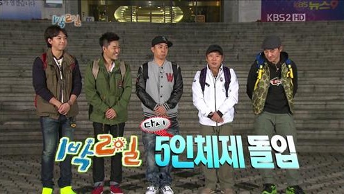 이날 방송에서는 이수근, 이승기, 김종민, 은지원, 엄태웅이 몸개그를 불사하며 노력하는 모습을 보였다.