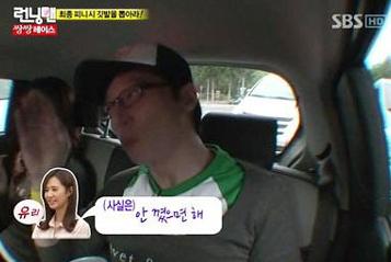 이날 윤아와 같은 조가 된 유재석은 이광수-유리 짝과 '커플아이템 5가지 사오기' 미션을 수행하기 위해 차로 이동했다.