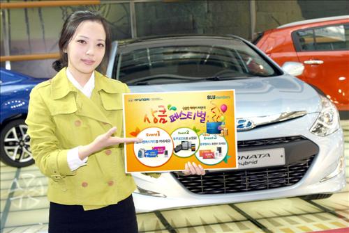 현대차 구매 고객인 '블루멤버스' 회원이 가맹점에서 포인트를 사용 후 응모하면 추첨을 통해 인터파크 투어 하와이·동남아여행권, 인터파크 전자도서 비스킷, 홈플러스 쇼핑 상품권, 롯데시네마 연간 이용권 등을 준다. 또 이벤트 응모 실적(참가 횟수)에 따라 커피빈 고급 커피머신 등을 제공한다.