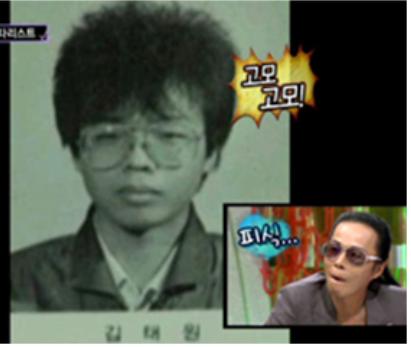 중학교 졸업사진에서 김태원은 독특한 헤어와 커다란 안경을 쓴 모습이 나이를 가늠할 수 없어 출연진들을 폭소하게 만들었다.