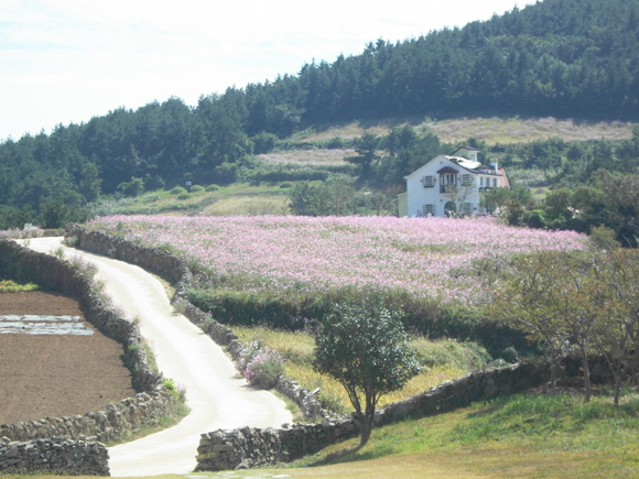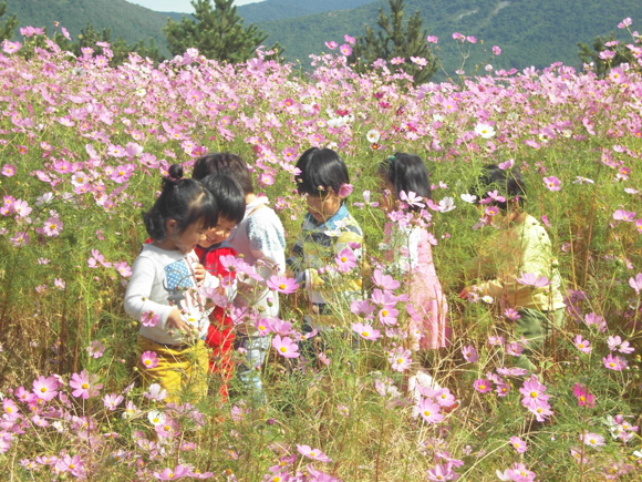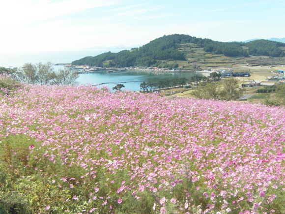 5일 오후 슬로시티로 지정된 완도 청산도에 코스모스가 활짝 피어 완연한 가을 풍경 속에 소풍 나온 어린아이들이 마냥 즐거워하고 있다.