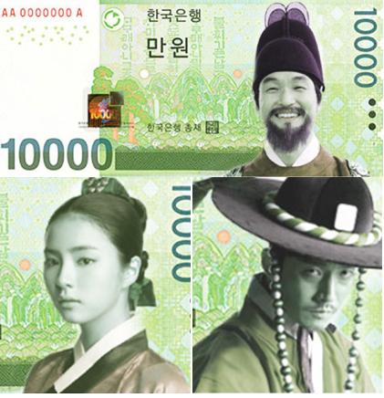 5일 첫 방송되는 SBS 새 수목드라마 ‘뿌리깊은 나무’에서 세종대왕 역을 맡은 한석규가 만 원짜리 지폐 속에 등장했다.