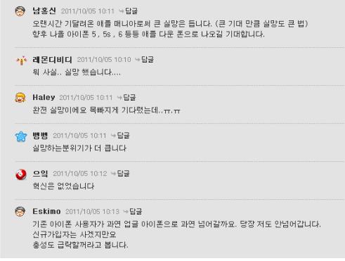 특히, 애플에 비교적 관대한 글이 주류를 이루는 네이버 카페 '아이폰&아이패드 사용자 모임(아사모)'에도 실망의 글이 연달아 올라오고 있다.