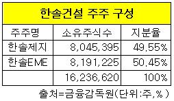 한솔건설은 한솔제지(지분율 49.55%)와 한솔EME(50.45%)가 지분을 100% 보유한 비상장 건설회사다. 사주는 한솔제지의 지분 17.79%를 보유한 이인희 한솔그룹 고문일가다. 이인희 고문은 고 이병희 삼성그룹 창업주의 장녀다.