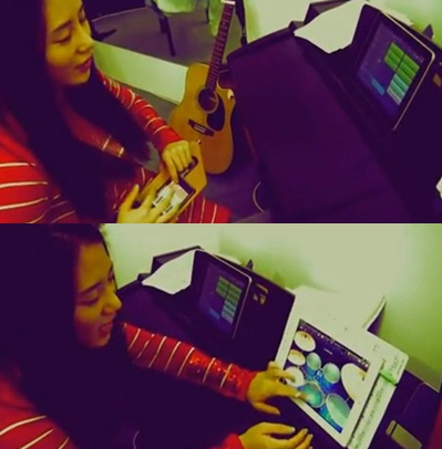 링크를 따라가면 보이는 영상에서 김여희는 고 스티브 잡스가 개발한 아이폰과 아이패드를 이용해 음악을 만들고 노래하고 있다.