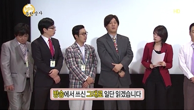 한편 8일 방송된 MBC '무한도전'은 하하가 "나만 왕따 됐다"라고 말하자 자막에는 "나만 외톨이가 돼 버렸구나"라고 쓰는가 하면 "내 머릿속에 멍청이가 들었다"라고 말한 건 "내 머리에 모자란 애가 들었구나"라고 착한 자막을 써 웃음을 자아냈다.(사진-화면캡처)