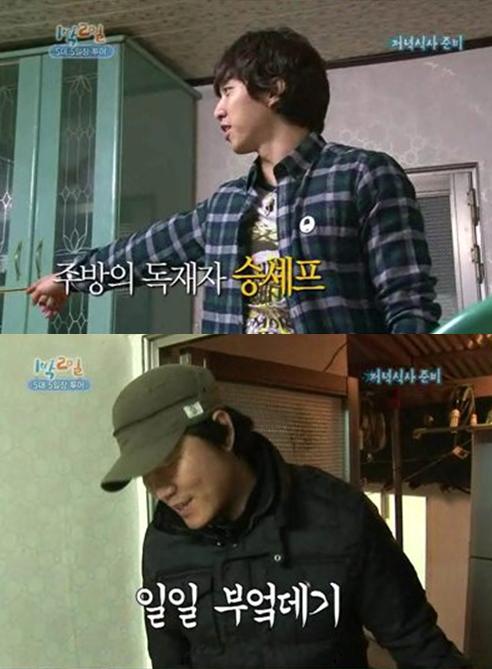 이에 나영석PD는 ‘일일 부엌데기’가 되어 이승기의 주방 보조로 나섰다. 이승기는 이날 나영석PD에게 쌀을 씻으라고 명령하고 쌀을 불리기 위해 마음속으로 600을 세라고 하는 등 독재자 모드로 변신해 시청자들에게 웃음을 줬다.