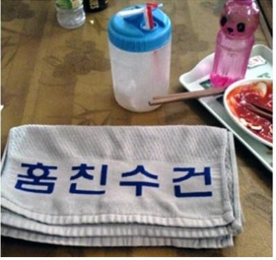 특이할 점은 이 수건에 새겨진 이름은 '훔친 수건'으로 찜찔방에서 도난당하는 수건이 많아지자 찜질방 주인이 아이디어를 낸 것으로 보인다.