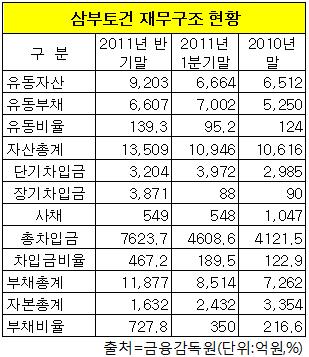 삼부토건은 올 1.2분기 총 1천890억원의 영업손실과 1천636억원의 순손실을 기록했다. 게다가 지난해 말 124%였던 유동비율은 올 1분기 95%까지 내려갔고, 3천800억원의 장기차입금이 쌓이면서 부채비율은 216%에서 지난 6월 말 727%로 급격히 악화됐다.
