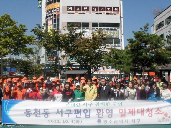 광주 서구 동천동(동장 권두영)이 지난 10월 1일자로 서구에 편입됨에 따라 주민센터 개소식을 갖는다.