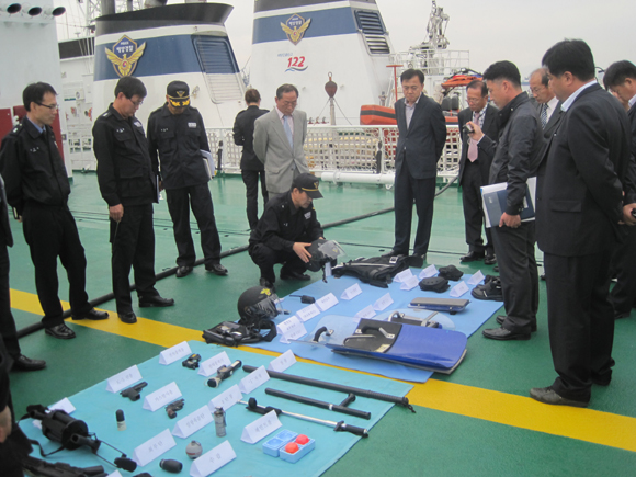 특히 해경 불법 외국어선 단속 장비에 대한 설명과 극렬하게 저항하는 불법 외국어선 나포 시 공조 협력 단속하는 방안 등 심도 있는 의견을 나눴다.