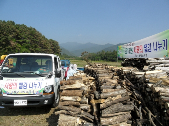 사랑의 땔감은 2011년 숲 가꾸기 사업 부산물인 원목을 수집해 바로 사용할 수 있도록 장작으로 만들어 제공한다.
