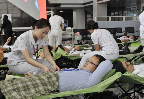 헌혈에 참가한 주홍수(28) 기사는 “주사바늘이 들어가는 1초의 찡그림으로 내 혈액이 정말 소중한 곳에 사용된다고 생각하니 마음이 뿌듯하다”고 말했다.