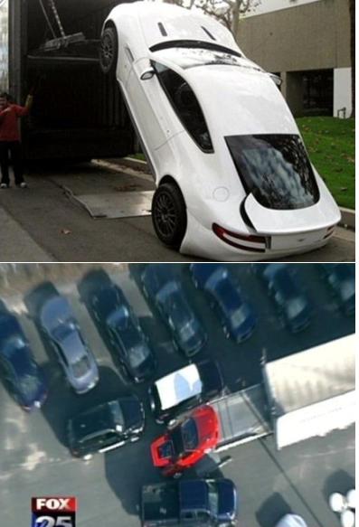 사진을 보면 한화로 약 3억6천만원정도에 판매되는 슈퍼카 페라리 F430 스파이더가 배송트럭에서 떨어지고 있다.