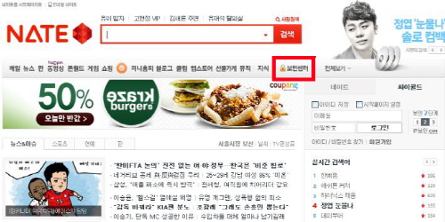 ▲메인화면에서 클릭 한 번이면 들어갈 수 있도록 배치 개편된 '네이트 보안센터'