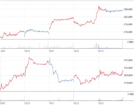 같은 날 이마트 28만9천원으로 전 거래일 대비 4천원(+1.40%)을 기록했다. 분할이후 지난 9월 33만원대까지 치솟았던 주가가 서서히 내림세를 보이며 거품이 빠진 모습이다.