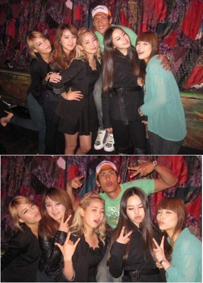 사진에서 박준형은 걸그룹 원더걸스 멤버들과 함께 포즈를 취하고 있다.