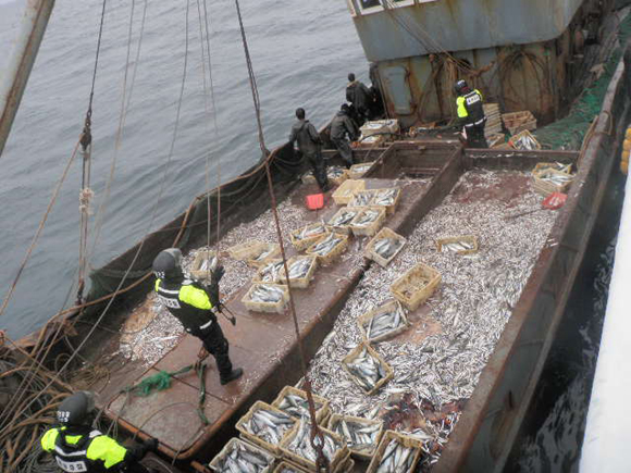 110톤급 쌍타망 중국어선 2척은 선내 허가증 등 일체서류를 갖추지 않고 불법으로 우리측 배타적 경제수역(EEZ)에 들어와 멸치 등 잡어 총 800kg 상당을 포획했다고 전했다.