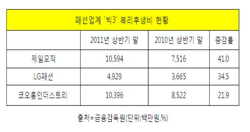 LG패션은 2천500만원, 코오롱인더스트리 1천700만원이였다.