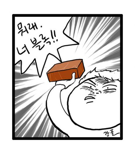 강풀 악플 대처로 올린 그림에는 ‘뭐래. 너 블록!!’이라고 외치며 붉은 블록 벽돌을 높이 쳐든 캐릭터가 그려져 있다.