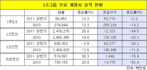 그나마 지주사인 (주)LS만 영업수익과 영업이익이 12%가량 올랐다.
