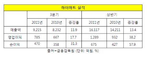 3분기 하이마트는 영업이익이 전년 동기 대비 17.7% 증가한 785억원을 기록했다. 당기순이익은 31.3% 증가한 470억원으로 수익성 개선에 성공했다.