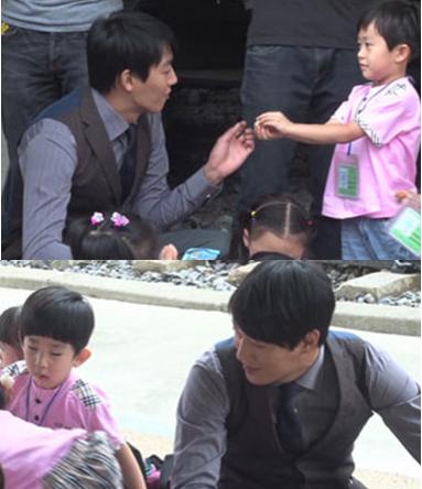 김래원은 촬영 대기 시간 중 마침 소풍을 나온 유치원생들과 섞여 아이들과 대화를 하거나 풀어진 가방을 챙겨주는 등의 세심한 모습을 보이며 아이들을 향해 '아빠 미소'를 지어보였다.