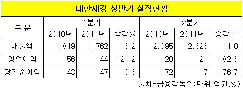 대한제강은 철스크랩으로 생산하는 빌렛과 이를 원료로 철근을 만든다. 이때문에 전체 매출액의 78% 이상이 원재료 구입비에 충당된다. 게다가 건설경기 불황에 따른 수요량이 정체 또는 급감하면서 수익을 내기 어려운 상태다.