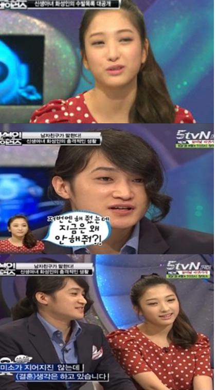 21세 신생아녀 박겨레 씨는 남자친구가 “콧물이 나면 콧물도 닦아주고 코딱지도 파준다”고 말해 MC들을 경악하게 만들었다.
