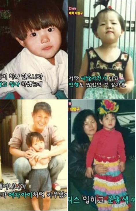 이어 "여자아이같이 키운 증거가 여기 있다. 투피스 입히고 분홍색 머리끈 묶고"라며 깜찍했던 어린시절 사진을 보여줬다.