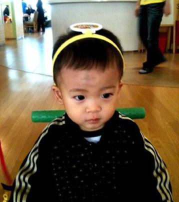 션은 20일 오전 자신의 트위터에 "꽃미남 하율이의 의사놀이"라는 글과 함께 아들의 사진을 올렸다.