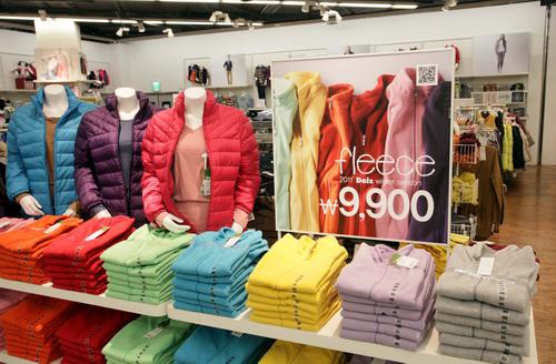 여성 조끼, 남성 티셔츠는 9천원, 여성 점퍼는 1만9천900원, 남성 팬츠는 1만1천900원에 판매한다.