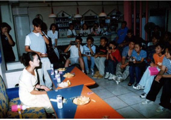 사진에서 송혜교의 과거 팬미팅 현장은 약 20명 남짓한 팬들과 함께 이야기를 나누며 조촐하게 팬미팅을 하고 있다.
